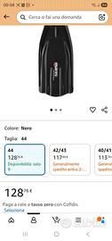 Vendo per errato acquisto pinne mares numero 44, provate e messe da parte, mai messe in acqua. Modello avanti 4 power, fantastiche, leggere e molto ergonomiche. uso lo stesso modello da piu di 10 anni e sono sempre le stesse.
