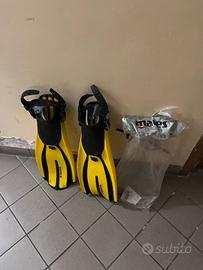 Pinne Mares regolabili usate per 4 immersioni ancora con confezione originale e plastiche per mantenere la forma. Euro 35 poco tt.
