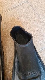 Coppia di pinne da sub vintage della storica marca Balco, modello "Dynamic". Queste pinne sono interamente realizzate in robusta gomma nera e sono note per la loro durata. Sono un pezzo di storia dell'attrezzatura subacquea, prodotte in Grecia, ideali per collezionisti o per chi cerca un'attrezzatura "old school" affidabile per l'apnea o lo snorkeling. Dettagli: Marca: Balco Modello: Dynamic Taglia: EU 42-44 (corrispondente a US 8-10 indicato sulla scarpetta) Materiale: Gomma Condizioni: Usate, come visibile in foto. La gomma presenta i normali segni del tempo e dell'uso (una patina superficiale e qualche graffio), ma è integra, non cristallizzata e non presenta tagli o crepe strutturali. Sono state conservate al riparo dalla luce diretta del sole. Produzione: Made in Greece Perfette per gli amanti del vintage e della pesca in apnea classica. 📦 Spedizione in massimo 24h.