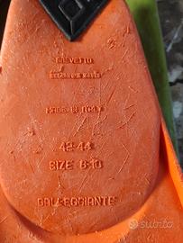 anni 80 arancioni riviera vintage con custodia arancio sport market pinne nuoto apnea subacquea gommone canoa..n.42/44 ma molto elastiche anche per numeri inferiori