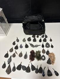 Vendo piombi carpfishing di varie grammature con scatola porta piombi, contiene anche qualche tendifilo e lead core.