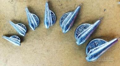 Vendo piombi da traina modello aletta tonda . Disponibili nelle misure 75g 100g 150g 200g 350g 500g 750g 1kg Diaponibili sempre o su ordinazione! Spedizione agevolata in tutta italia Prezzo 5€ per kg