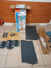 Vendo PISCINA BESTWAY STEEL PRO MAX 3.05M sistema STEEL PRO MAX con 10 ELEMENTI PERIMETRALI e 10 SOSTEGNI e 10 RACCORDI PLASTICA con PERNI 2 POMPE FILTRO CARTUCCIA con TUBI e RACCORDI CONTENITORE CLORO GALLEGGIANTE RETINO RACCOGLI FOGLIE DI SUPERFICIE (senza manico) PULITORE FONDO (con manico) COPERTURA BESTWAY NERA TELO DI BASE VERDE Buone condizioni, fondo in parte scolorito. Utilizzata fino a estate 2024.