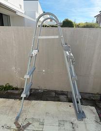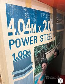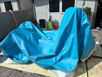 Piscina da esterno. Misure 4,04 x 2,01 x 1,00. Da montata occupa 4,41 x 2,41. L’acqua arriva al circa a 90 cm di altezza. Usata ma in buone condizioni. Ogni inverno è stata riposta nella scatola. Come si vede nella foto in un punto c’è un adesivo in quanto vi è un buchino (c’è dall’acquisto) ma non ha mai dato problemi. Sono compresi scaletta e pompa. Usata 3 anni. Preferibile consegna a mano
