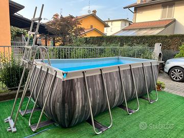 Utilizzata una sola stagione. Include scala e pompa a sabbia i cui tubi tranne uno che è da sostituire xke l’ ho schiacciato, sono tutti funzionanti. Ho fatto installare lo skimmer professionale della san marco a lato esterno x avere meno ingombro ed avere l’acqua sempre pulita. Il tutto nella scatola oroginale ! Includo nel prezzo una confezione intera di prodotto “trittico” x la tenuta dell’ acqua e telo best way x coprirla.
