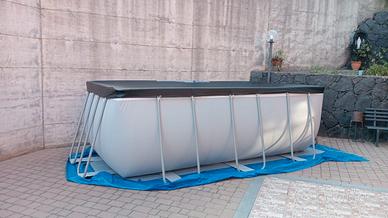 piscina fuori terra usata soltanto per 2 estati e smontata ogni fine stagione. cedo pure filtro a sabbia comprato separatamente, scaletta e telo per coprirla in più c'è anche il retino e l aspiratore per il fondo.