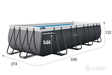 Vendo per passaggio a modello superiore Piscina INTEX fuori terra rettangolare usata solo per 2 anni e regolarmente pulita e conservata durante l' inverno. Praticamente pari al nuovo, misure 549×274×132 cm. La piscina è completa di Pompa di filtraggio a Sabbia, Scaletta in alluminio con gradini removibili e Robot per pulizia pareti e fondo piscina. Prezzo richiesto per il tutto € 500 non trattabile. NON SPEDISCO. Ritiro presso il mio domicilio.