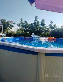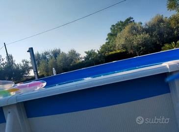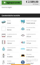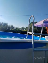 Piscina dalla Forma Ovale, Sistema di fissaggio con Paletti laterali, Colore piscina Bianco, Nr. persone Max 11-15, Lunghezza piscina 610 cm, Larghezza piscina 375 cm, Altezza piscina 132 cm, Altezza max acqua 117 cm, Capacità piscina 23280 L, Portata oraria max pompa 4000 L/h, Filtro A sabbia (cambiata lo scorso anno con sabbia di vetro). Per altre info 3275850988