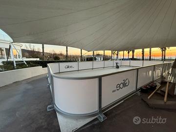 Pista di pattinaggio sul ghiaccio ecologica 12mX6m. È finto ghiaccio, ma l’effetto è lo stesso. Non necessita di acqua o corrente elettrica, una volta montata non si deve fare nient’altro. Forniamo pattini con il taglio (vario numero), l’ affila pattini e le due balene per i bambini. Ideale per villaggi, eventi natalizi e parchi.