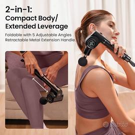 Pistola Massaggio Pieghevole NAPRE: Manico Estensibile & 5 Angoli, Massaggio Schiena/Tessuti Profondi per Dolori, Percussione, 32 Velocità, 6 Testine Silenziosa con Custodia