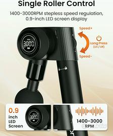 ✨ Display LED Chiaro: Il display LED integrato da 0,9 pollici mostra chiaramente la velocità corrente e il livello della batteria, aiutandoti a regolare con precisione l'intensità del massaggio e a visualizzare la batteria residua.