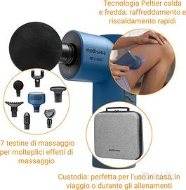 Pistola per massaggio muscolare della Medisana modello MG600 con funzione di calore o freddo, 7 accessori e 3 livelli di vibrazione