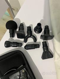 Pistola per massaggio muscolare profondo completa di cavo e accessori da utilizzare in base alla zona da trattare. Trasportabile.