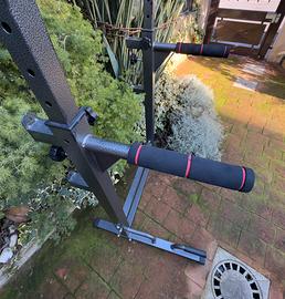 Questa Power Tower Dip Station Multifunzionale supporta sollevamenti verticali delle ginocchia, flessioni, dip e trazioni, che aiutano a tonificare e a mettere a punto braccia, core, spalle, petto e schiena per un corpo più forte. Realizzata in robusta struttura d'acciaio, la base a forma di H spessa 102 cm con potenti ventose antiscivolo garantisce maggiore stabilità e sicurezza. La gomitiera triangolare è solidamente costruita per garantire un supporto stabile, consentendo di praticare una varietà di allenamenti.