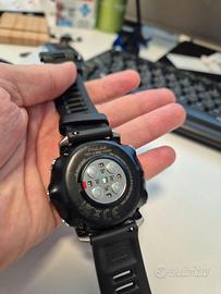 Il Grit X Pro Titan è un orologio GPS di fascia alta di Polar. Orologio multisport di alta gamma, il Grit X Pro titan è il fiore all'occhiello della gamma outdoor del marchio finlandese. Il suo vetro zaffiro e la cassa in titanio assicurano resistenza militare, resistenza all'acqua fino a 100m e una gamma di funzionamento compresa tra -20 e +50°C. Il tutto senza trascurare lo stile, grazie ai materiali scelti con cura. Pronto per tutte le attività outdoor, il Grit X pro Titan offre oltre 130 sport compatibili. I suoi cruscotti esterni sono sempre attivi, in modo da avere sempre a portata di mano le informazioni essenziali. Bussola, coordinate GPS, altitudine per orientarsi, meteo per prevedere le condizioni e ora solare per sfruttare al meglio la giornata. Gioiello di tecnologia, il Grit X pro Titan offre un catalogo di funzioni per analizzare l'allenamento o il sonno. Grazie alla guida in collaborazione con Komoot, non c'è più il rischio di cercare la strada, basta correre senza sosta. Incorporando tutte le caratteristiche del Grit X Pro, questa versione Titan offre un modello ancora più leggero e robusto, destinato agli avventurieri estremi e ai professionisti. Cinturino aggiuntivo in pelle in omaggio. Vendo perchè non lo uso.