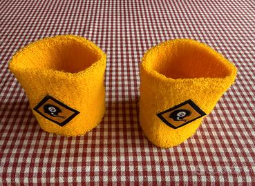 Coppia di polsini tipo tennis con logo dei Pittsburgh Steelers, in spugna mai usati misure 10 x 10 cm.