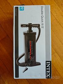 Vendo pompa ad aria manuale Intex Double Quick III S, perfetta per gonfiare e sgonfiare rapidamente materassini, piscine, gommoni e altri giocattoli gonfiabili.