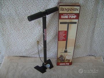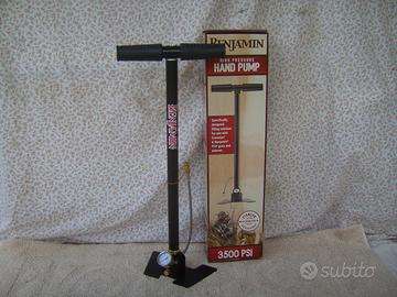 Pompe per carabine ad aria compressa, modello Benjamin. Manometro esterno 300 bar, filtro aria incorporato. complete di frusta, a richiesta attacco rapido. Nuove con garanzia.