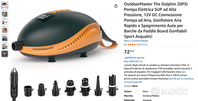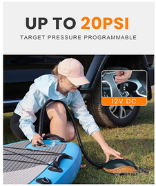 potenza di gonfiaggio fino a 20 PSI ed è in grado di gonfiare una tavola da paddle gonfiabile da 260 litri in circa 10 minuti.