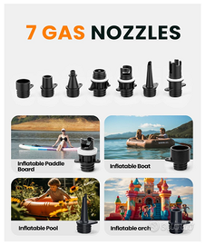 Viene fornito con un set completo di ugelli per adattarsi alla maggior parte dei gonfiabili ad alta pressione, inclusa la valvola H3.