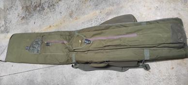Portacanne 13" che può contenere fino a 4 canne,adeguatamente imbottito con alloggiamento per mulinelli.Ben tenuto e senza danneggiamenti.Disponibile a mostrarlo a chi interessato