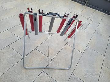 Porta canne da trote. Contiene fino a n.8 canne a cui si aggiunge uno scomparto porta guadino. Inizialmente dotato dei porta canne rossi, ho provveduto a modificarlo inserendo quelli grigi. Condizioni ottime. No perditempo.