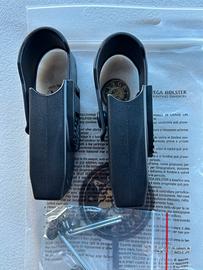 Porta caricatore doppio in polimero nero della Vega Holster, nuovo completo di supporti da cinturone.