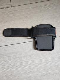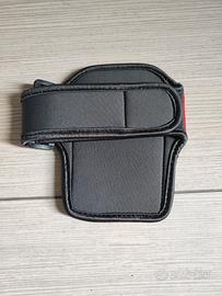Per inutilizzo, vendo un porta cellulare da braccio, mai utilizzato, marca "DAVIDOFF PARFUMS", in tessuto, di colore rosso/grigio, con cinturino a strappo, utile per il trasporto del cellulare durante le varie attività sportive.