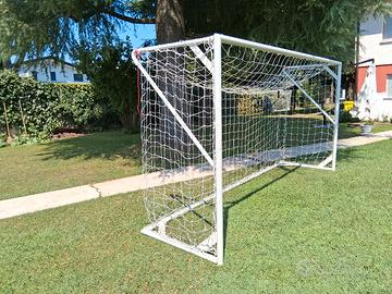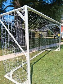 Vendo porta da calcio,misure lunghezza 4 metri,altezza 206 cm,profondità 100 cm,struttura con tubo spessore 2mm,con diametro da 60 mm,possibilità di fissarla al terreno tramite dei picchetti poiché ci sono dei fori di fissaggio integrati alla struttura, rete da calcio nuova,professionale,