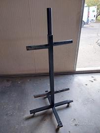 Porta dischi ghisa / acciaio artigianale 5 spazi con tubo 48 mm dotato di ruote