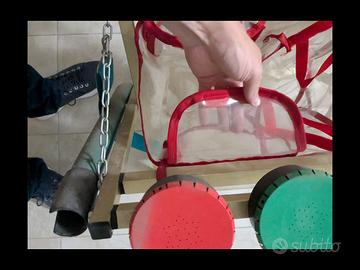 - sacca porta pesci centrale con altre due sacche attaccabili tramite velcro 4 barattoli per esche con coperchio a scatto vano porta oggetti