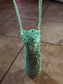 Realizzato a mano all’uncinetto, modello con tracolla, pezzo unico, color Tiffany
