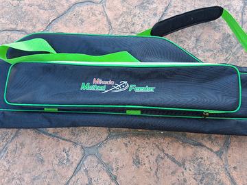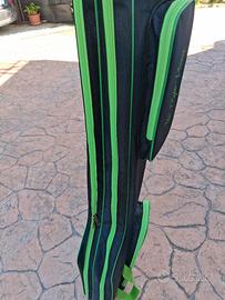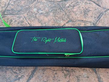 Fodero borsone porta canne method feeder,usato circa 5/6 volte tenuto molto bene,doppio scomparto per 2 canne e 2 tasche laterali. Usato per trota torrente per tenere una 10M e una 13M. Compatibile shimano daiwa trabucco evento excalibur veret artico npu cr cimoliana italica tubertini ryobi Ignesti maver