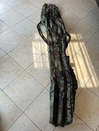 Vendo per inutilizzo porta canne a 3 scompartimenti.come nuovo ha varie tasche porta attrezzi cinghia per portarlo a spalla.