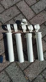 Ottimo porta canne in acciaio nautico rimovibile da barca e quattro porta canne fissi in materiale plastico con attacchi.