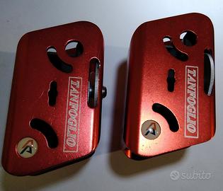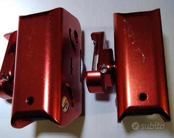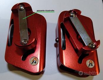 N⁰ 3 Vega Holster - portacaricatore universale per tiro dinamico in resina acetalica nera. Possibilità di utilizzo sia dorsale che sul fianco, ruotabile a 360⁰, ritenzione del caricatore e della cintura regolabile, spessori intercambiabili per l'adattamento a diversi tipi di caricatori. N⁰ 2 Tanfoglio - portacaricatore custom, progettato per essere altamente versatile e adattabile a diversi tipi di caricatori. N.B. - Il passante per cintura di un portacaricatore Tanfoglio custon (evidenziato in foto) è stato ricostruito in quanto l'originale si era rotto.