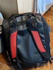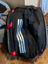 Vendo borsa da padel ADIDAS MULTIGAME Nero/Rosso 3.4 2025, l'accessorio perfetto per i fan di Ale Galán e per i giocatori che cercano stile, funzionalità e comfort. Design premium e materiali di alta qualità, questo modello garantisce che la tua attrezzatura sia protetta e organizzata sia dentro che fuori dal campo. La Borsa da padel Adidas multigame 3.4 di ALE GALAN, presenta un ampio compartimento centrale perfetto per riporre abbigliamento e attrezzatura in modo organizzato. Due scomparti laterali isolati proteggono le racchette dalle variazioni di temperatura. Inoltre dispone di uno spazio separato per mantenere le scarpe fresche e separate dal resto dell’attrezzatura. Offre inoltre diversi scomparti pratici per riporre piccoli oggetti personali come chiavi, portafoglio o accessori. Le cinghie sono regolabili e le maniglie adattabili garantiscono un trasporto ergonomico e confortevole.