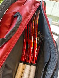 Vendo per inutilizzo portaracchette modello da 6 racchette ma molto capiente (io tengo 4 telai in uno scompartimento) e latro accessori. Condizioni perfette e pochissimo utilizzato