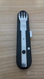 Posate e Coltello multifunzionali Fosco, apertura a mano con fodero in Nylon.