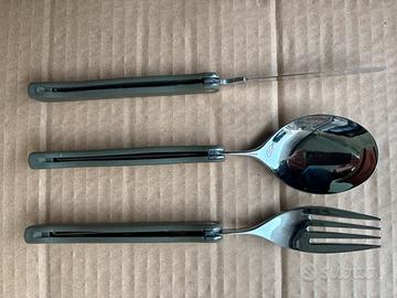 Vendo kit di posate adatte per escursioni,campeggio o boy scout. Le posate non sono mai state usate e sono complete della loro custodi per il trasporto, infatti è munita di aggancio per contura.