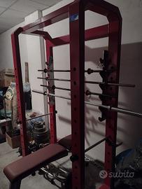 Power rack v3erre. Molto tecnico il migliore sul mercato . Per cambiare appoggio non bisogna scaricare il bilanciere (unico sul mercato con questo sistema). Le barre di sicurezza hanno il sistema easy-step (per cambiare l'altezza non bisogna svitare nulla, il cambio è immediato). Volendo è possibile ordinare dalla casa madre la barra per le trazioni che si avvita alla parte superiore quindi si possono svolgere tutti gli esercizi funzionali (fitness funzionale con trx o Flying). Il colore è rosso e non ha graffi o segni di usura.