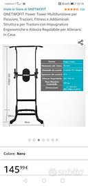 Vendo tower multifunzione per allenamento addominali, dorsali , braccia, trazioni, Deep , crunch, usata pochissimo euro 100, ritiro Roma zona metro Laurentina.