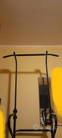 come da oggetto per allenamento a corpo libero utile al potenziamento e sviluppo dei muscoli dorsali, bicipiti (mediante trazioni alla sbarra) addominali e tricipiti.