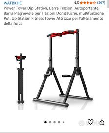 Vendo barra trazioni power tower, permette molti esercizi tra cui trazioni e dip, molto stabile! Un mese di vita, ho un bambino piccolo e non riesco a trovare il tempo per usarla. Praticamente nuova. Si piega e si apre in meno di un minuto per salvare spazio Scambio solo a mano