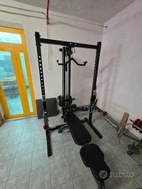 Powertec Workbench Half Rack + Lat Tower Option – compatto, solido, completo Vendo Powertec Workbench Half Rack completo di Lat Tower Option, soluzione ideale per home gym con spazio limitato ma senza compromessi su stabilità e sicurezza. Il rack è progettato per l’allenamento con pesi liberi in totale sicurezza ed è caratterizzato da una struttura robusta e compatta, tipica dei prodotti Powertec. La Lat Tower Option (compatibile con dischi olimpici) integra: cavo alto (lat machine) cavo basso (pulley) con scorrimento fluido e regolare, consentendo l’esecuzione di numerosi esercizi per parte superiore e parte inferiore del corpo. In vendita: rack + Lat Tower. Non inclusi: barre, dischi e panca visibili in foto. Condizioni: buone condizioni generali, perfettamente funzionante, con normali segni estetici compatibili con l’uso. Prezzo del nuovo: – Rack ~ 550 € – Lat Tower ~ 700 € Totale nuovo: ~ 1.250 € Richiesta complessiva: 590 €. Ritiro a mano. Su accordo, posso occuparmi personalmente del trasporto entro 50 km. Sto riorganizzando la home gym, disponibili anche altre attrezzature (vedi altri annunci).