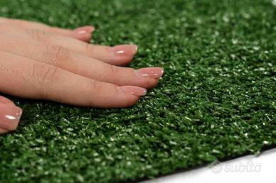 Prato verde artificiale 7mm, dimensioni rotolo h2x10mt, altamente drenante per evitare la formazione di pozze d'acqua.