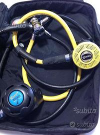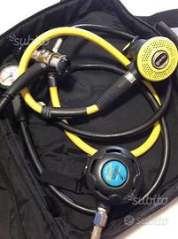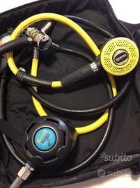 Vendo erogatore aqua-lung modello Spiro Ranger e secondo erogatore Mares Axis, completo di primo stadio Spiro e manometro. Il tutto è stato utilizzato poco, ma è da revisionare in quanto da un po' di tempo inutilizzato. Gli erogatori sono leggeri ed ideali per immersioni ricreative. Includo nel prezzo anche la valigetta di contenimento.