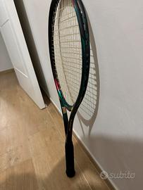 Svendo la racchetta completa di borsa, praticamente nuova, non esiste alcun raschio o segno di usura, usata da mia moglie esattamente 30 minuti nella prima lezione, dopo la quale non ha più voluto praticare il tennis.