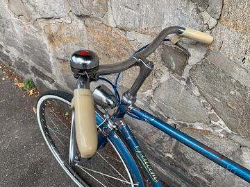 Appena terminato il restauro conservativo di questa rarissima e splendida milanese dei primi anni 50. Prinetti & Stucchi fu uno dei primi marchi di biciclette italiane in assoluto. Questa elegante bicicletta ha un telaio sportivo molto bello e leggero con bellissime giunture cromate. Movimento centrale e pedivelle alleggerite marcate FB Stucchi. Manubrio sportivo Ambrosio in acciaio con manopole in bachelite bianca marcate Ambrosio con leve freni incorporate. Freni Universal in alluminio. Cerchi nuovi in acciaio sportivi e mozzi d'epoca non marcati. Copertoni Michelin World Tour da 28". Tutte le decal originali ben visibili, così come il fregio frontale in ottone smaltato. Campanello bronzino d'epoca. Bellissima sella in cuoio Montegrappa con molle a riccioli, Made in Italy nuova. La bicicletta è stata completamente smontata, pulita, lucidata fino al più piccolo dettaglio prima di essere lubrificata, ingrassata e revisionata da cima a fondo. Leggera e molto scorrevole. Biciclette Prinetti & Stucchi sono molto rare e molto difficili da trovare in questo stato. È preferibile la visione e prova nel mio studio di Milano.