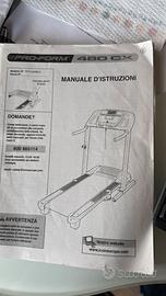 Vendo Tapis roulant Proform 480 CX Potenza motore 2 CV velocità Max 18 Km/ora inclinazione 15 gradi Pro Shock Plus Quick Speed Quick Incline praticamente nuovo usato 3 volte console perfetta con ventola di raffreddamento e presa cuffie